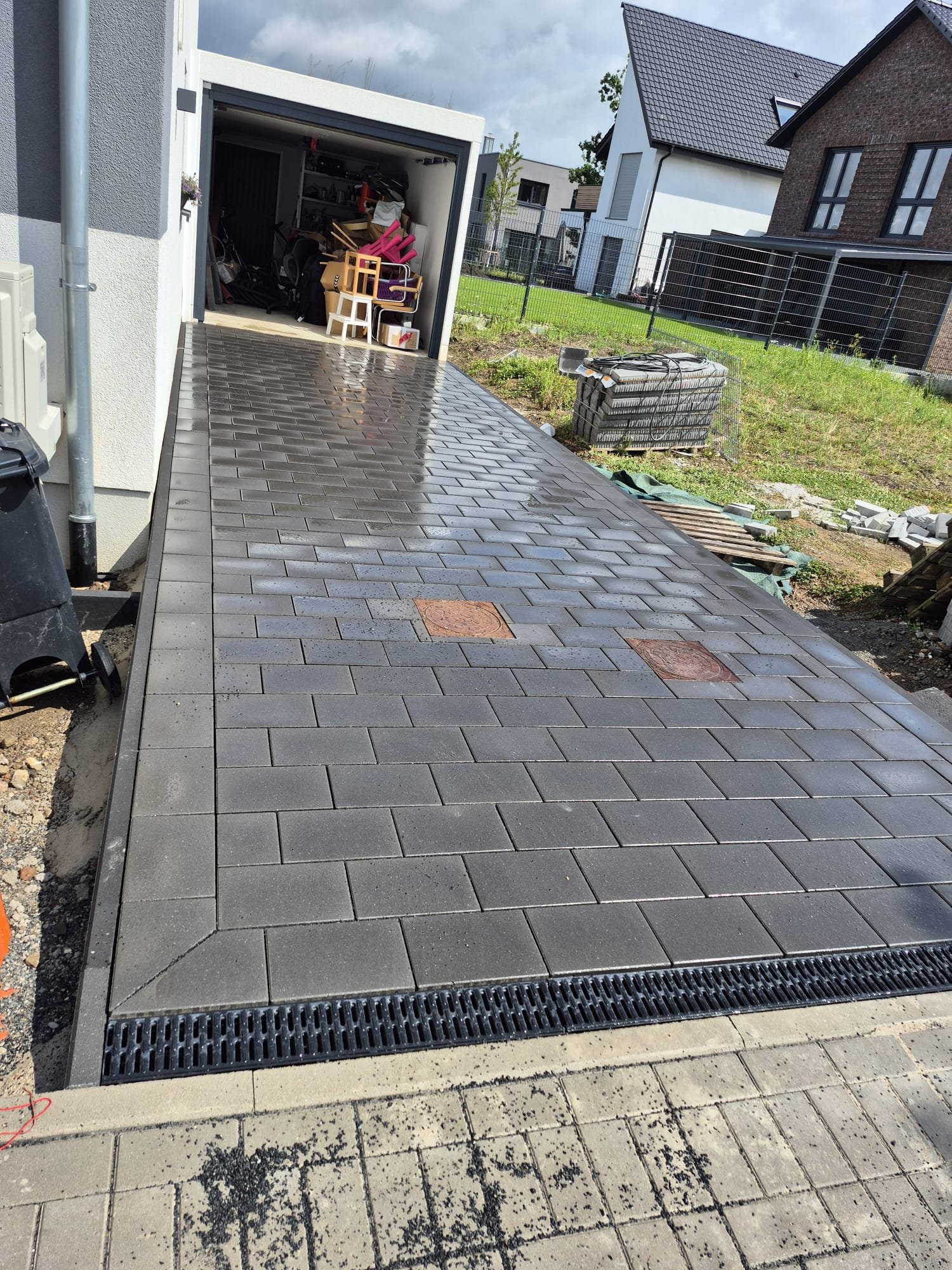 Entdecken Sie eine Auswahl unserer abgeschlossenen Arbeiten – von Pflasterflächen und Rollrasen bis hin zu Zaunbau und Natursteinprojekten.